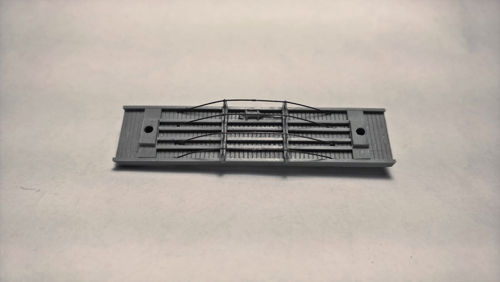 Assembly was fairly straight forward. I began with the underside of the car, by installing the queen posts with super glue. I opted to use fine wire for the truss rods, and drilled #75 holes in the included pilot holes. Once I was happy with their fit, I used super glue to attach them to the car floor.